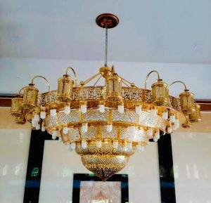 repika lampu masjid nabawi ,dengan dimeter 500 cm dengan susun 5 ,bahan dasar kuninga full