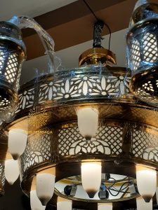 ,seolah olah kita di dalam masjid tersebut sedang beerada di makkah,bnyak desain lain yang kaitanya dengan lampu nabawi tersebut,ada lampu diding yang berbentuk L yang dari kuningan juga,aalag