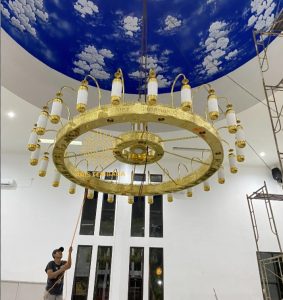 sehingga customer memakai lampu lampu tersebut dengan begitu senang dan mantap,dengan begtu percaya diri sehinngga memeberika lampu tersebut memebuat ruangan masjid menjadi estetik ,